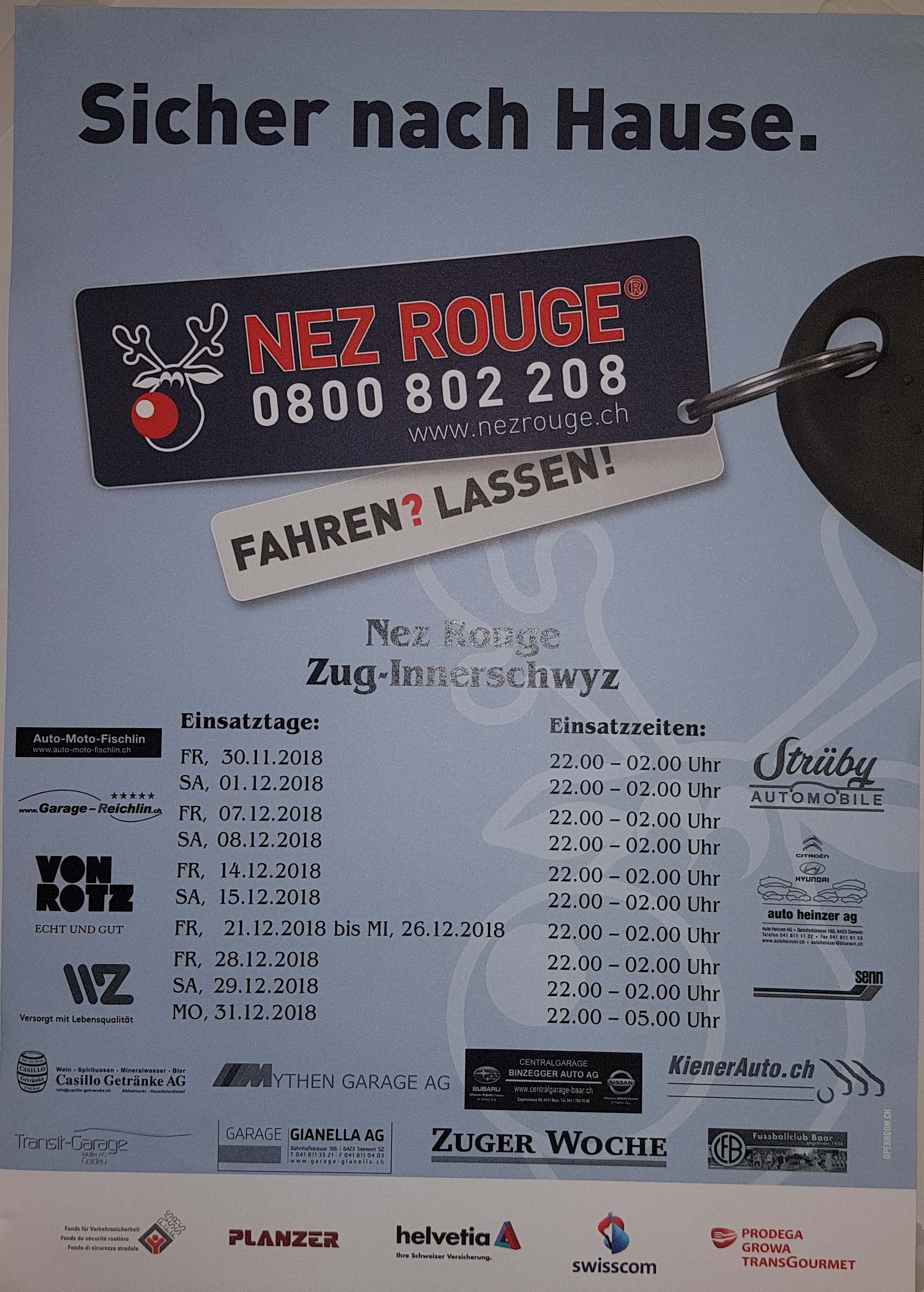 Nez Rouge hat seine Einsatz-Zentrale über die Feiertage bei uns in der Cafeteria. .>>Flyer